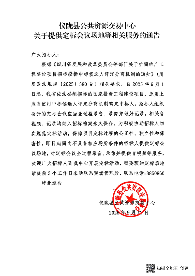 仪陇县公共资源交易中心关于提供定标会议场地等相关服务的通告
